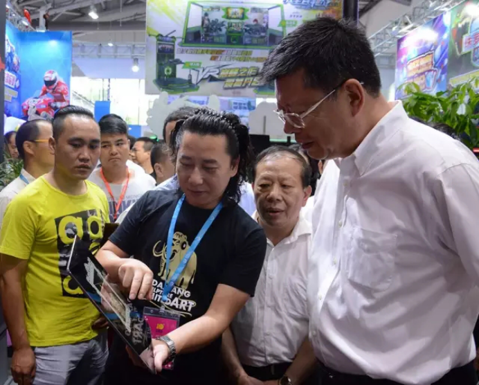 開(kāi)幕式一結(jié)束,中山市各個(gè)領(lǐng)導(dǎo)就在中國(guó)文化娛樂(lè)行業(yè)協(xié)會(huì)執(zhí)行會(huì)長(zhǎng)劉金華、中山市文化廣電新聞出版局局長(zhǎng)羅建華、廣東游戲游藝文化產(chǎn)業(yè)城總裁葉威棠等的帶領(lǐng)下移步前往展廳參觀。