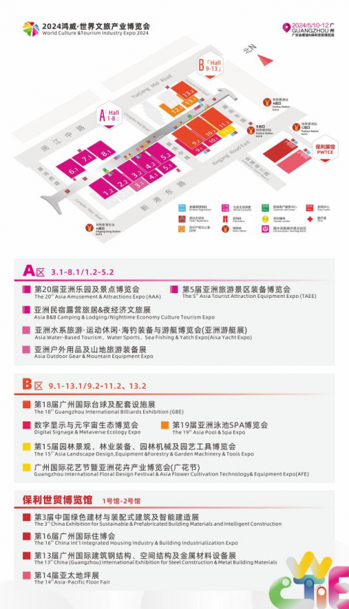2024鴻威·世界文旅產(chǎn)業(yè)博覽會(huì)將于5月10-12日在廣州·中國進(jìn)出口商品交易會(huì)展館舉辦:展覽面積達(dá)24.7萬平方米,AB區(qū)聯(lián)動(dòng),參展企業(yè)近4000家,將吸引20萬觀眾參與。本屆博覽會(huì)分設(shè)游樂文旅、數(shù)字文旅、康養(yǎng)文旅、景觀文旅、休閑文旅、水系文旅六大版塊,展覽范圍包括游戲游藝、主題公園、室內(nèi)樂園、景區(qū)裝備、文旅科技、夜游演藝、民宿/旅居/露營、旅游車船/運(yùn)動(dòng)休閑車、泳池SPA、元宇宙、AR/VR、數(shù)字顯示、數(shù)字體育、園林景觀、花卉園藝、水上運(yùn)動(dòng)休閑用品/海釣裝備/游艇、臺球及配套設(shè)施等,所涉細(xì)分領(lǐng)域涵蓋60%以上的文旅產(chǎn)業(yè)。博覽會(huì)同期舉辦2024世界文旅大會(huì)等30多場會(huì)議論壇活動(dòng),匯聚100+頂級重磅嘉賓、300+行業(yè)主管單位及相關(guān)機(jī)構(gòu)代表/企業(yè)負(fù)責(zé)人代表、2000+文旅從業(yè)者、2000萬+線上觀眾傾情參與,線下將吸引2萬+專業(yè)觀眾參會(huì),致力匯聚全球智慧,共謀產(chǎn)業(yè)繁榮。